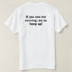 Avant : Dos de technicien de pyrotechnie : Si vous me voyez courir, essai à continuer ! Humour foncé. Drôle et efficace à la plage et aux parties, particulièrement autour du Jour de la Déclaration d'Indépendance.