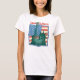 Terre de Liberté. Statue de la Liberté devant le drapeau avec les mots "Terre de la Liberté" à travers la flamme qu'elle tient