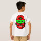 Une tête de robot en rouge avec un élégant panneau en forme de croissant vert, un troisième oeil vert, avec des dents blanches et des reflets. Il a une sorte de grain bizarre comme s'il a découvert les merveilles d'une nouvelle huile à moteur révolutionnaire. D'un dessin vectoriel original de N.A. Berry. Le motif est répété à la fois sur le dos et sur le devant.