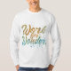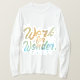 Ce t-shirt est décoré du slogan "Travailler pour Merveille" dans un vif dégradé d'arc-en-ciel. Chaque mot est d'une couleur différente, créant une déclaration audacieuse et encourageante