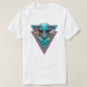 Un design simple d'un alien aux éléments triangulaires, avec une palette de couleurs dominée par le turquoise (tosca) et le rose. L'alien a un look ludique et futuriste, avec des formes triangulaires géométriques intégrées dans le design, créant une atmosphère dynamique et moderne.