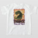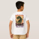 Halloween Tyrannosaurus Rex Dinosaur Têtes et Tails Light T-Shirt présente un Tyrannosaurus Rex mignon et effrayant de l'avant et de l'arrière avec les mots sur le devant, C'EST mon costume et sur le dos sous le dos du dinosaure sont les mots, Trick ou Treat! Derrière le dinosaure ludique se trouve un ciel jaune texturé, orange et une bordure violette ondulée et amusante, peinte par notre talentueux illustrateur pour enfants, Traci Van Wagoner. Idéal pour tous ceux qui aiment Halloween, les dinosaures, et s'habiller de façon décontractée. Halloween éffrayant !