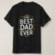 The design features a sign with the phrase "The Best Dad Ever" in large white letters, with a relaxed and welcoming appearance. This sign is adorned with delicate arabesques and golden hearts, adding a touch of elegance and sophistication to the design. The combination of white letters and golden arabesques conveys a message of recognition and appreciation towards the father as the best of all, highlighting his importance with a refined style.