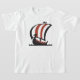 Ce tee-shirt présente un graphisme simple et audacieux d'un Viking traditionnel avec tête de dragon et voile rayée, en quête d'aventure.