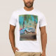 Rétro Automobile verte en mousse de mer avec paysage urbain et palmiers.