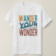 Der T - Shirt enthält den Satz "Wander Your Wonder" in einem lebendigen, vielfarbigen Display. Jedes Wort ist eine andere Farbe, die ein Gefühl der fröhlichen Erkundung schafft. Das Design selbst ist einfach und unklar, lassend die mehrfarbige Bühne des Textes in der Mitte. Dies ist ein perfekter T - Shirt für alle, die Abenteuer und das Streben nach ihrer eigenen einzigartigen Neugier zu sich nehmen.