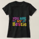 Le t-shirt affiche une dynamique déclaration d'amitié. Le texte "you are my bestie" est affiché dans un mélange de couleurs néon et pastel, avec une saupoudrée de parties scintillant pour ajouter du pizzazz. Ce design est parfait pour célébrer votre meilleur ami dans le style.