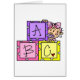 Un bébé adorable et trois blocs d'alphabet sur des T-shirts d'ABC de bébé, des tasses, des cartes, des autocollants, des sacs fourre-tout, des combinaisons, des timbres-poste, et d'autres articles.