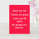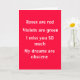 La carte idéale "I Miss You" à envoyer à celui qui vous manque le plus. "Les Roses sont rouges, les violettes sont vertes, vous me manquez tellement, Mes rêves sont obscènes". Nous donnons une partie de CHAQUE vente à la Fondation de recherche sur le cancer du sein.
