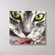 Dieses Design zeichnet sich durch ein hochauflösendes Bild einer Katze aus, mit grauem und schwarzem Fell und schönen grünen Augen. Sie leckt zuversichtlich ihre eigene Pfote, um sich selbst zu pflegen.
