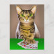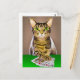 Postkarte in einem Portrait einer braunen und bräunlichen Katze, die Karten spielt - und gewinnt
