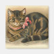 Entworfen von Susan Epps Oliver. Süße Abbildung einer jungen Tabbattacke mit einem roten Band.