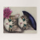 Zwei grüne Mit Augen Tablettenkatzen mit Hut und Blume Jigsaw Puzzle für Erwachsene oder Kinder