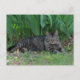 Voici une carte postale qui a été créée à partir d'une de mes photos originales de félins couchés dans mes iris. Nous appelons ce tabby gris "Fattylou" J'ai découvert ce chat en randonnée de chemin dans les bois près de chez moi. Puis il a commencé à le nourrir et finalement il est venu dans ma cour. Je vais piéger ce chat pour TNR.