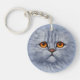 Portrait d'animal de compagnie d'un chaton Tabby gris moelleux avec des yeux jaunes-oranges piercing. OEuvre d'art réaliste créée à partir d'une peinture à l'huile originale de l'artiste animalière Crista S. Forest.