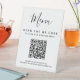 Digital Hochzeitsmenü Tafelschild. Frag deinen Gästen, den Qr-Code zu scannen, um dein Hochzeitsmenü zu sehen. Alle Texte können bearbeitet werden. Minimalistisches Design für jeden Empfang-Dinner in Schwarz-Weiß mit einem zeitlosen Schriftart-Stil.
