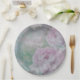 Papierabendessen Teller, die mit anderen Zazzle-Produkten übereinstimmen, um Ihnen zu helfen, Ihr Mittag- oder Abendessen mit einem Thema zu verbinden, indem Sie digitale Software verwenden, die Pastellfarben und rosafarbene Pfannkuchen verwendet, die die rechte Seite der Teller umgeben.