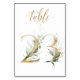 Jolie carte de numéro de table avec un motif botanique - une illustration aquarelle de feuilles vertes et dorées. Table 23. Veuillez vérifier tous les numéros disponibles