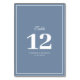 Table blanc cadre bleu poussiéreux mariage numéro de tab