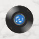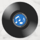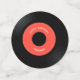 Table Confetti de design vintage Vinyl Records avec texte personnalisable (sur les étiquettes rouges) et notes musicales amovibles sur les étiquettes bleus.