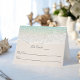Les petits détails rendent votre réception de mariage mémorable. Cette carte pliable est spécialement conçue pour les mariages sur la plage ou de destination et présente un rivage océanique rafraîchissant avec une eau bleu aqua et une douce houle qui clapote sur le sable. Un texte facultatif a été inclus avec un espace pour les numéros de table, les choix de repas et les noms des invités. Le verso comporte le nom des mariés et la date du mariage. Tout ce texte est facultatif et vous pouvez modifier ou supprimer le texte si vous préférez la carte sans texte. Cette carte de table a été placée sur une carte pliable de 4x5,6 pouces pour être utilisée comme une carte de tente.