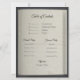 Rendez votre journée de mariage encore plus spéciale avec ce beau programme de mariage de style Table des matières ! Ce programme unique est conçu pour ressembler à une table des matières de livres ouverts, parfait pour tout conte de fées, livre de contes, littéraire ou mariage thématique de bibliothèque. Personnalisez-le avec votre fête de mariage et l'ordre des événements pour vous assurer que chaque détail de votre célébration est commémoré. Obtenez l'addition parfaite à votre bonheur toujours après avec ce magnifique modèle de programme de mariage!
