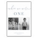 La carte numérique moderne et élégante de la table de mariage présente un design minimaliste bleu et blanc poussiéreux. Le numéro du tableau correspond à l'âge du couple et comporte des photos en noir et blanc de celui-ci à cet âge. Personnalisez avec vos noms et date mariage avec le modèle facile à éditer avec une police de script élégante et une police serif classe. Créez autant de numéros de table que vous le souhaitez en changeant le "un" en votre numéro souhaité, en échangeant les photos pour vous-même, et en ajoutant 1 article à votre panier. Répétez pour le nombre de numéros de table requis. Découvrez les objets correspondants dans la collection "Dusty Blue Modern Elegant".