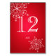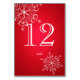 Carte de numéro de table des flocons de neige rouge et blanc pour compléter l'ensemble mariage correspondant.
