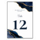 Elégante carte de numéro de table mariage de luxe moderne avec porte de parties scintillant bleu marine et or dans deux coins, avec un arrière - plan blanc. Pour les produits correspondants, visitez la collection, ou envoyez-moi un message via Zazzle Conversation.
