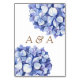 Cette élégante carte de table à fleurs d'hydrangée bleue est parfaite pour un mariage de printemps ou d'été. Le design floral classique hydrangea avec des feuilles doux bleu poudreuse et vert.