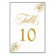 Table Élégant Mariage Floral Script or Numéro de tableau