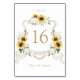 Floral Elegant Tournesols Blanc Hydrangée Gold Crest Numéro de table