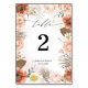 Floral Terracotta Rustic Boho Mariage Numéro de tableau.