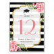 Carte de numéro de tableau de graduation à rayures florales roses.