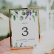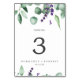 Ce numéro de table de lavande rustique et d'eucalyptus est parfait pour un mariage extérieur simple et élégant. Le design floral présente des feuilles d'eucalyptus aquarelle et de la verdure avec des sprigs de fleurs sauvages violets. La carte s'imprime à l'avant et à l'arrière (double face). Ajoutez chaque numéro de table dont vous avez besoin à votre panier individuellement.