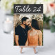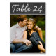 Les élégantes cartes personnalisées de table de mariage peuvent être personnalisées avec une photo fiançailles de la mariée et du marié. Le design comporte du texte de numéro de tableau blanc sur un arrière - plan rustique de style tableau noir. Pour customiser : tapez le numéro du tableau, cliquez sur "modifier" par la photo par défaut pour télécharger votre propre photo, et ajoutez cette carte de numéro de table individuelle à votre panier. Répétez l'opération pour tous les numéros de table dont vous avez besoin.