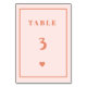 Table Mariage d'écriture manuscrite rose rétro Numéro de