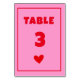 Table Mariage d'écriture manuscrite rose rétro Numéro de
