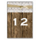 Table Mariage en bois rustique et dentelle Numéro de tab