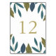 Ces cartes de numéro de table sont parfaites pour tout couple qui planifie une fête mariage moderne branchée. Le design présente des feuilles de feuillage dessinés à la main dans les tons bleu et vert sur un arrière - plan blanc propre et est fini avec un libellé simple à modifier. Le design simple peut être personnalisé pour votre événement spécial et sera le numéro de table parfait pour toute fête à thème floral, y compris : douches nuptiales, fiançailles, wedding showers, fêtes d'anniversaire et bien plus encore.