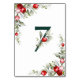 Ce Noel Table Number présente 7 baies sauvages décorées et feuillage d'arbustes aux couleurs traditionnelles de Noël et décorées avec un cadre de feuillage forestier et de baies rouges juteuses avec arrière - plan blanc. Profite-en.