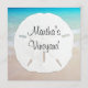 Nom de la table, cartes de mariage à thème de la plage avec menu d'un côté et gros dollar de sable de l'autre. Asseyez les invités en nommant chaque table après une ville locale, ou un autre thème. Directement sur les banquettes de la réception où se trouve la carte de mariage de l'autre côté de ces cartes de carré à thème de plage océanique.