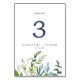 Ce numéro de table de verdure d'été est parfait pour un élégant mariage du milieu de l'été. Le design botanique présente un agencement luxuriant d'eucalyptus couleur aquarelle peint, de verdure et de feuilles verts avec de subtils ressorts de fleurs roses rousses. La carte s'imprime à l'avant et à l'arrière (double face). Ajoutez chaque numéro de table dont vous avez besoin à votre panier individuellement.