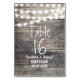 Bois rustique et lumières à cordes numéro de table. arrière - plan en bois gris vintage décoré avec une chaîne de lumières. Invitation de mariage parfaite pour mariage avec lumières de nuit thème mariage, thème de la grange, thème du jardin, mariage extérieur avec lumières scintillantes.