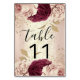 Table Numéro de tableau Florales roses Rose Gold Marsala
