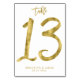 Cartes de numéro de table de mariage - Numéro 13 - avec effet feuille d'or (faux, imprimé comme image) et texte personnalisable - vous pouvez ajouter le nom de la mariée et du marié et la date du mariage imprimé sur l'arrière - plan blanc