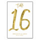 Cartes de numéro de table de mariage - Numéro 16 - avec effet feuille d'or (faux, imprimé comme image) et texte personnalisable - vous pouvez ajouter le nom de la mariée et du marié et la date du mariage imprimé sur l'arrière - plan blanc