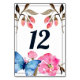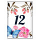 Cette carte de table présente une aquarelle peinte design floral & un papillon bleu & est répété sur le dos.