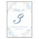 Numéro de tableau pour la collection de couronnes florales bleues. Le design évoque le printemps et les débuts avec ses teintes pastel. Des fleurs d'aquarelle bleue, des vignes et des feuilles encadrent le texte sur un arrière - plan blanc. Parfait pour un jardin ou un mariage du printemps.