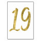 Cartes de numéro de tableau - Numéro 19 - avec effet feuille d'or (faux, imprimé comme image) sur arrière - plan blanc